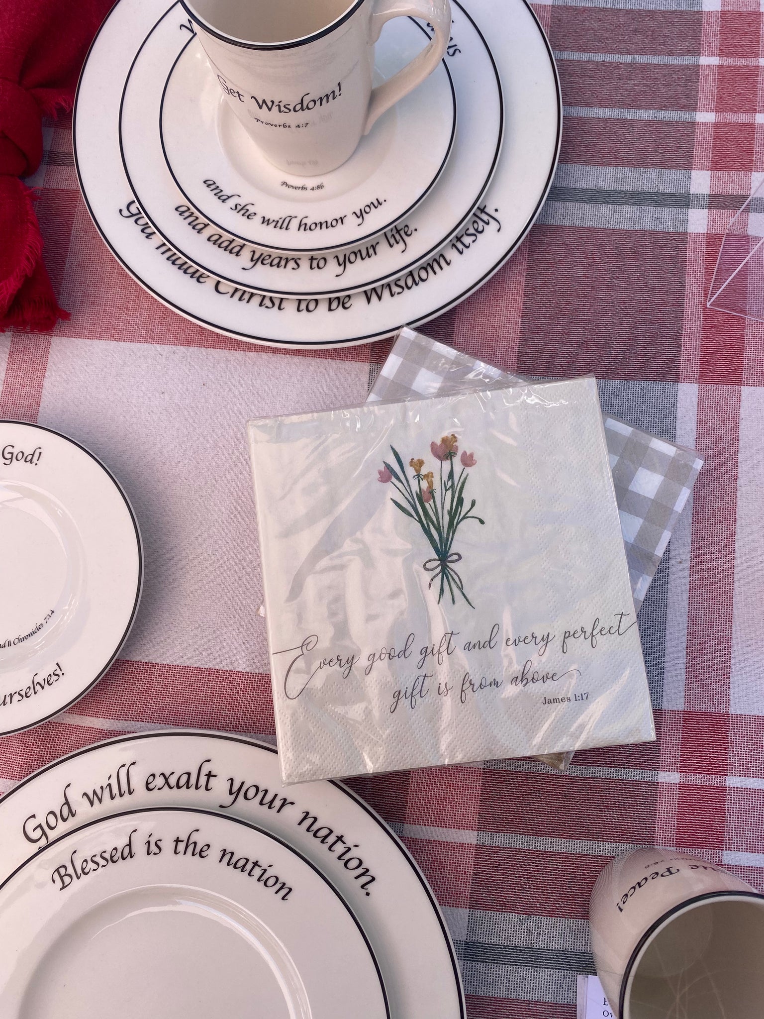 Beautifully designed with a minimalist floral illustration and the Scripture from James 1:17 — “Every good gift and every perfect gift is from above” — these napkins are a gentle reminder of God’s blessings in the everyday moments.